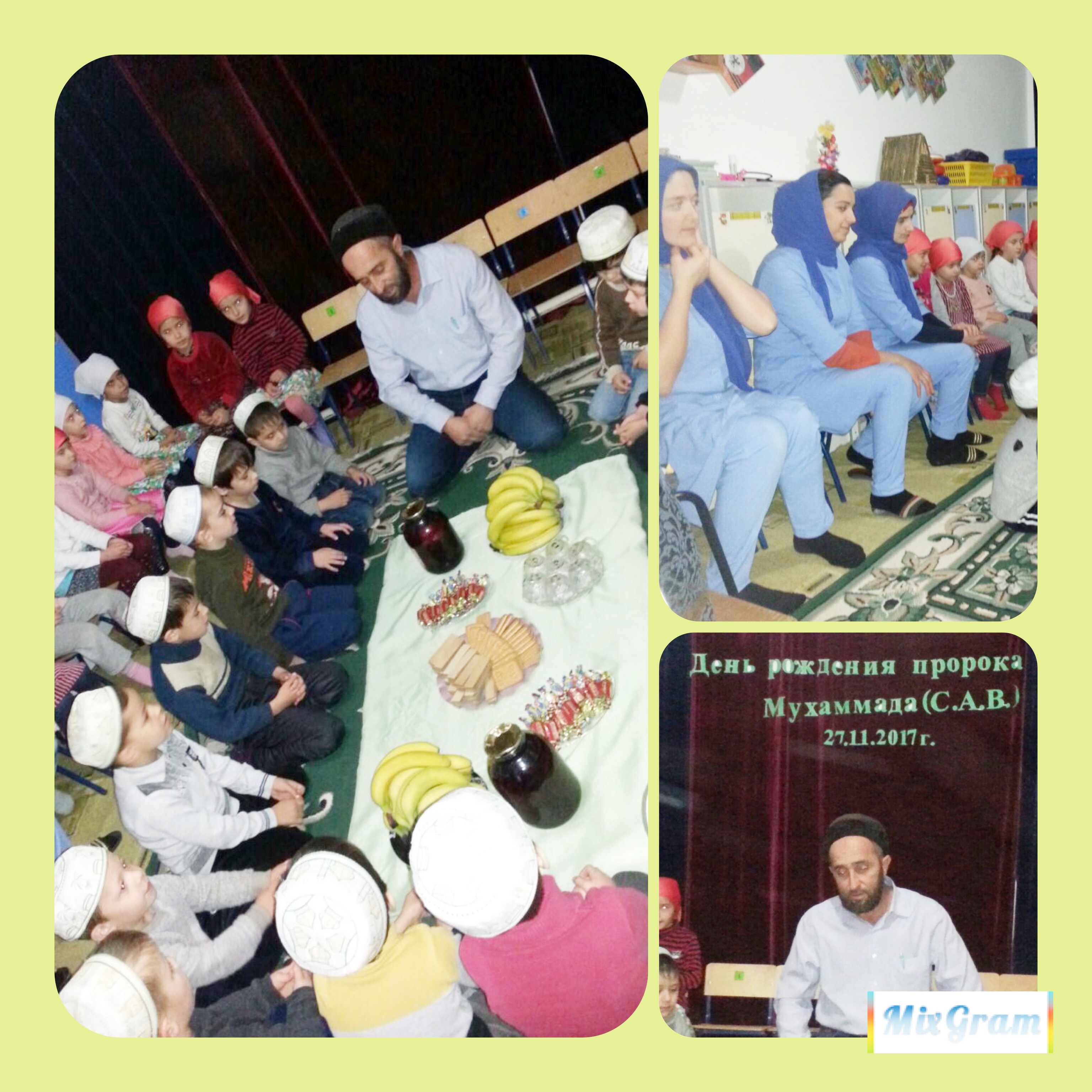 27.11.2017В МБДОУ «Детский сад с.Зандак» прошло чтение Мавлида в честь Дня рождения Пророка Мухаммада (да благословит Его Аллах и приветствует) и наступившего священного месяца Раби-уль-авваль.