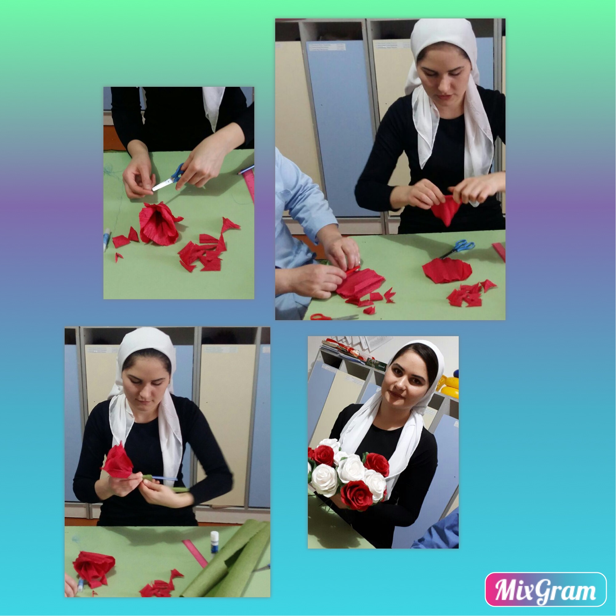 Воспитатель Шахтиева М-А. провела мастер - класс с педагогами по теме: "Цветы розы - из гафрированной бумаги" на конкурс "Воспитатель года - 2018"
