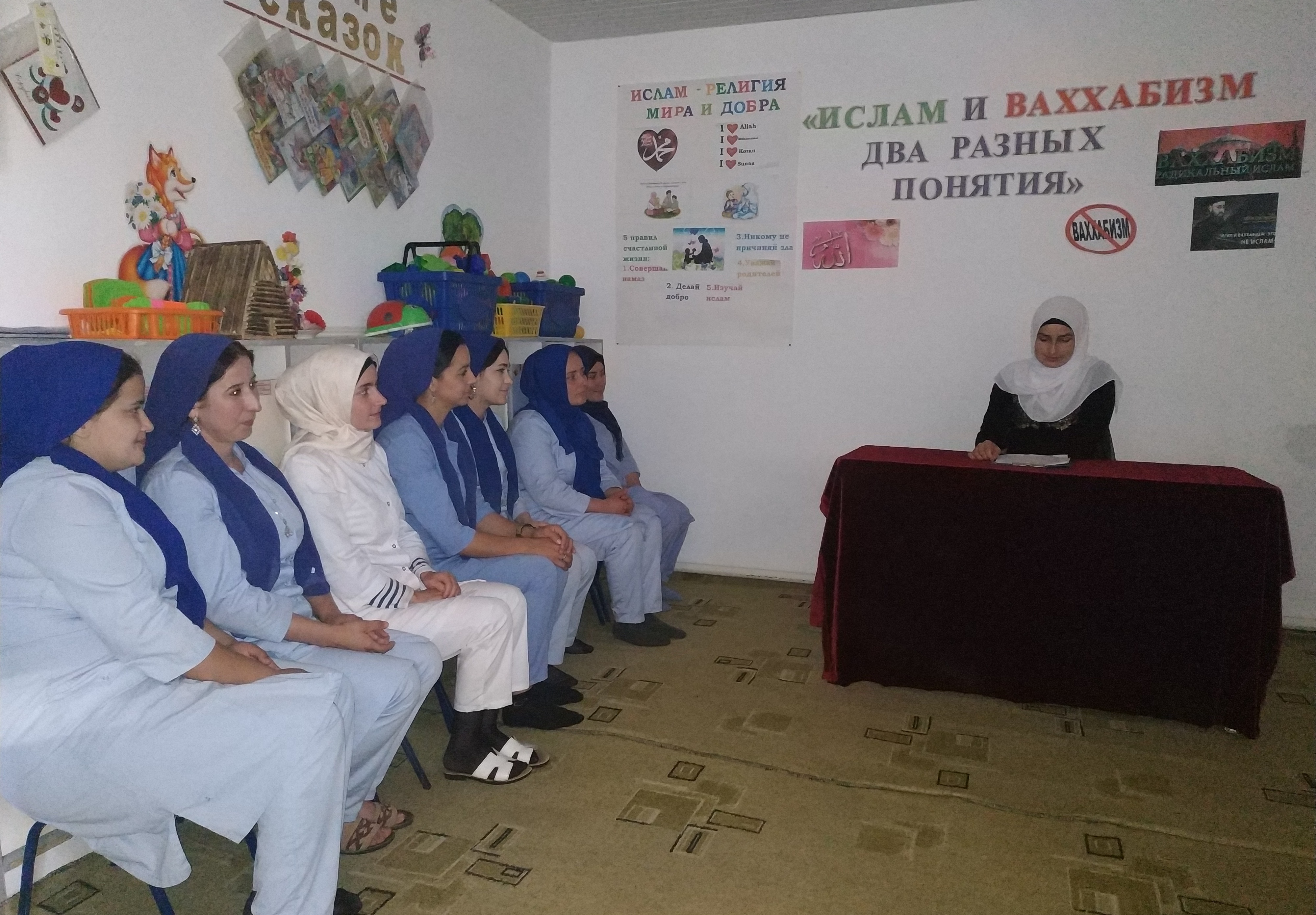Беседу провела старший воспитатель, Задаева З.М.В ходе беседы до сотрудников детского сада доведены сведения, что ислам и ваххабизм — противоположные понятия, далекие друг от друга по своей сути. Что ислам - это религия мира, добра и толерантности, это традиционная культура и высокая мораль, где нет места хаосу и насилию.