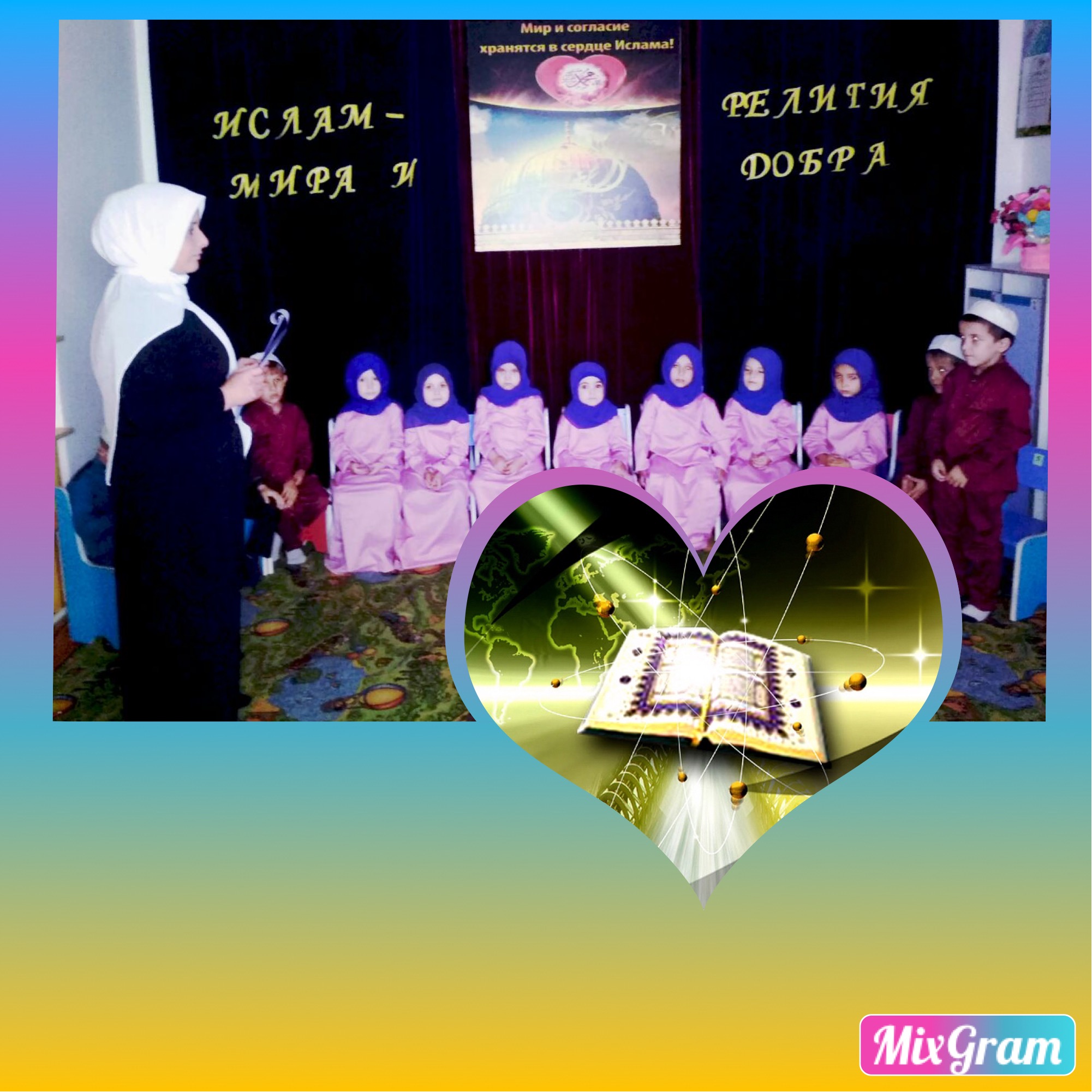 В ходе мероприятия воспитатель, Абдулмуслимова Г., ознакомила воспитанников с историей возникновения религии «Ислам», с его основными пятью столпами, также рассказала, что Ислам является самой молодой из мировых религий. Детям было рассказано об основных символах, обычаях и святынь религии.